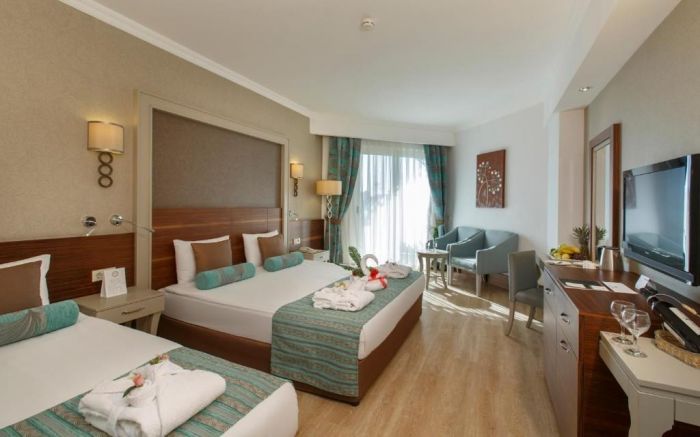 На територията на хотела: Основен ресторант, а-ла-карт ресторанти (с предварителна резервация), барове, дискотека, два открити басейна, две водни пързалки, SPA център с турска баня, парна баня и сауна, фитнес център, анимационна програма, спортни и развлекателни дейности, търговски център, конферентна зала, безжичен интернет в публичните части на хотела и в стаите.