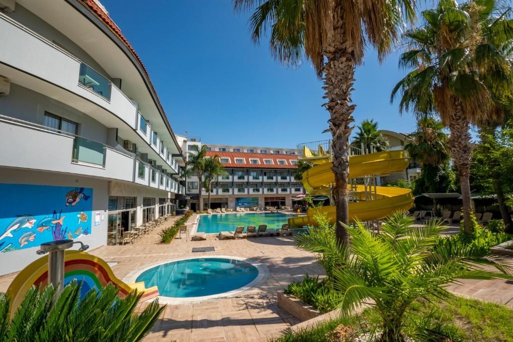 Разположение: Хотелът се намира на 55 км от летището в Анталия, на 500 м от центъра на Кемер. Построен е през 2006 г., на територия с обща площ от 13 000 м2, последна реновация е направена през 2024 г.
