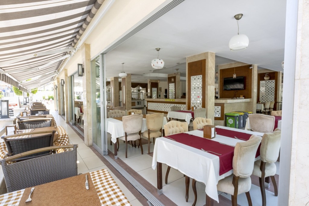На територията на хотела: Бюфет-ресторант, бар до басейна, басейн, детски басейн и аквапарк. Хотелът разполага със собствен плаж с чадъри и шезлонги. Фитнес зала, сауна, турска баня.