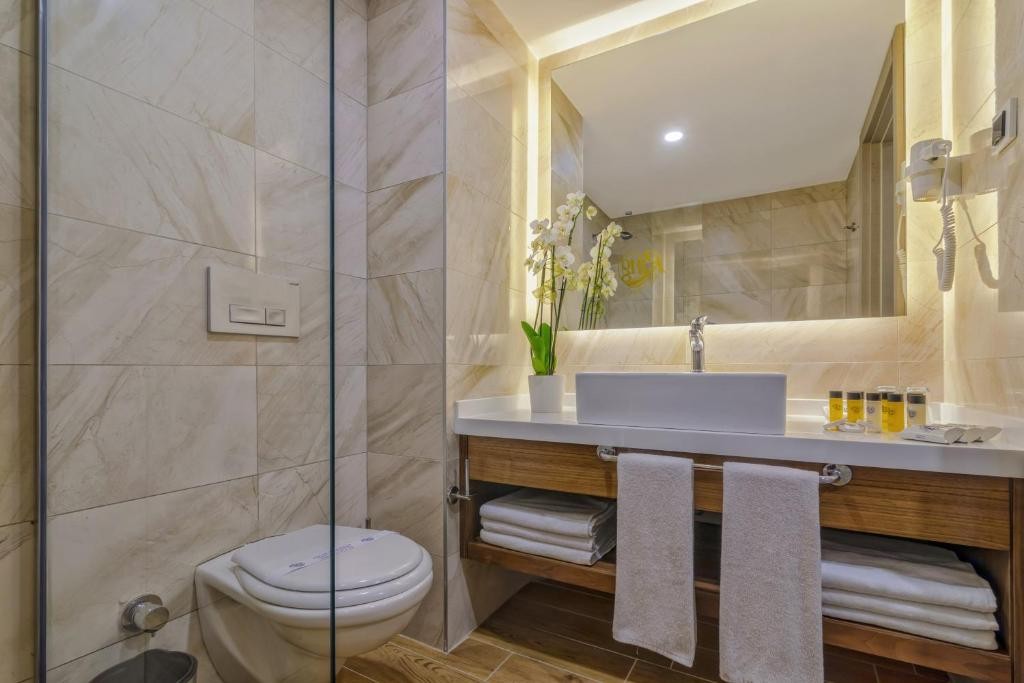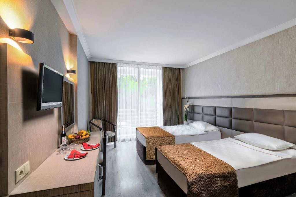 Безплатни услуги: фитнес зала, аеробика, тенис на маса, дартс, турска баня, сауна, плажни хавлии, шезлонги и чадъри, конферентна зала, водни игри, един път в седмицата турско шоу, дискотека (входа е безплатен), WiFi Интернет в общи части и в стаите.