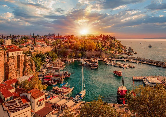 Обзорна екскурзия на Анталия разходка до историческата част /Кале ичи/ разглеждане на забележителности от римско, византийско селджукско и османско време. Йивли минаре от 13 век Адриановата порта от 2 век, античнотопристанище. Посещение на водопада Дюден и шопинг в магазин за кожени изделия и ювелирен център. В Анталия се намира най-големият тунелен аквариум в света. В общо 40 тематични аквариума е разположено огромно разнообразие от морски обитатели, което прави този аквариум един от най-добрите аквариуми в света.