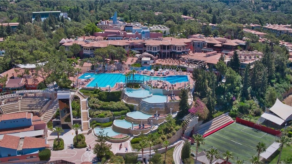 3 основни ресторанта, 5 а-ла-карт ресторанта (с предварителна резервация, срещу заплащане), 10 бара, 11 открити басейна (2 от тях отопляеми), 2 закрити басейна, аквапарк с 18 водни (разположен на площ от 22.000 м²). За децата: Baby Club ( 6м-3г), Snoopy Club(3-5г), Jokers Club (6-8г), Kid’s Club( 9-12г),Teens Club (13-17г) мини голф, професионална детска анимация, спортни кръжоци за деца (джудо, водни спортове, тенис, мрежа за катерене и пр.), "Детски рай" - детски комплекс с водни пързалки и с 8 детски басейна (1 от които отопляем), детски плаж, детски площадки, загадъчни пещери, съкровищни острови, детски амфитеатър.