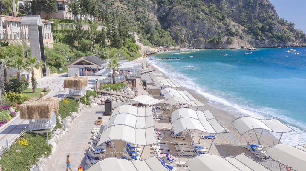 Собствен, пясъчно-чакълест плаж, кей. Чадъри и шезлонги на плажа и при басейна - безплатно. Плажни кърпи - безплатно.