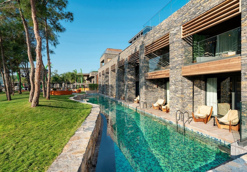 Разположение: Хотелът е разположен на площ от 110.000 м² и се намира на 15 км. от летище Милас, на 20 км. от центъра на Бодрум, в района на Гюверджинлик. Разположен на брега на морето, отворен през 2018 г.
