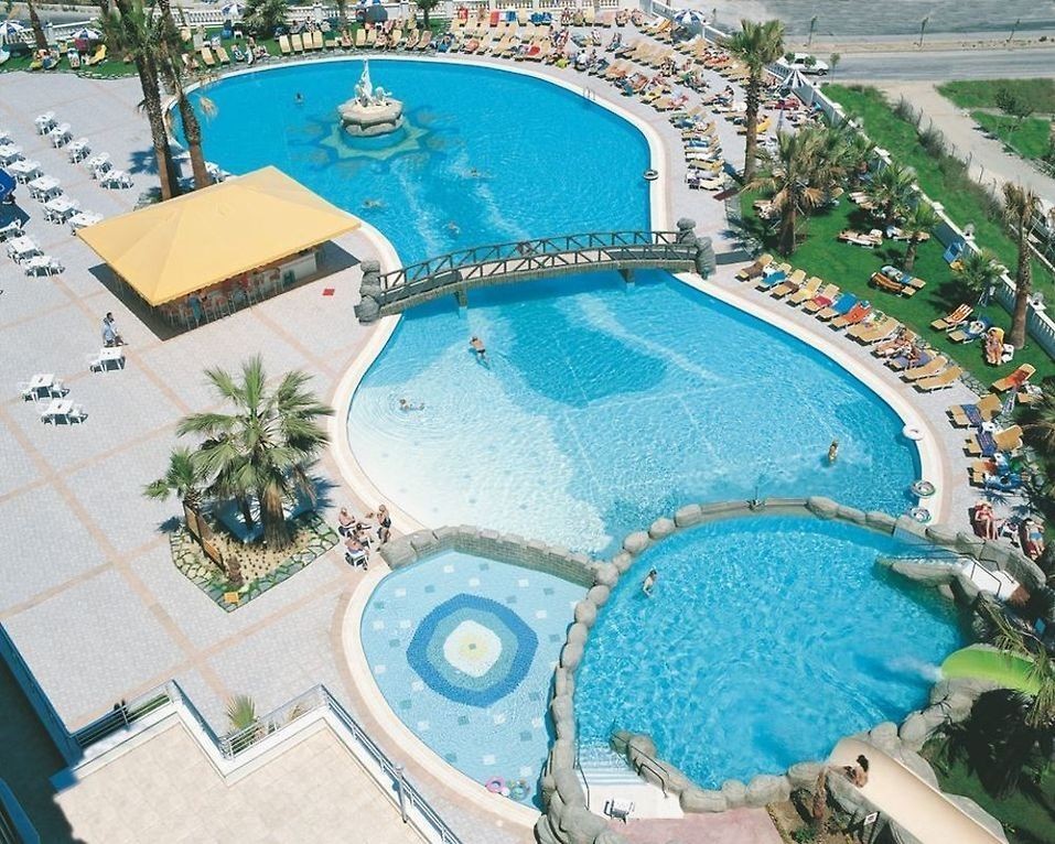 Основен ресторант, 2 бара, 2 открити басейна, закрит басейн (отопляем през студените месеци), водни пързалки, тв зала, магазини, паркинг.