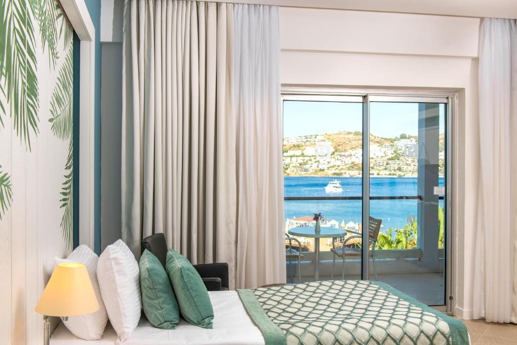 Разположение: Хотелът разполага с луксозен СПА център и собствен плаж, разположен в село Гундоан, на 48 км от летището и на 19 км от центъра на Бодрум.