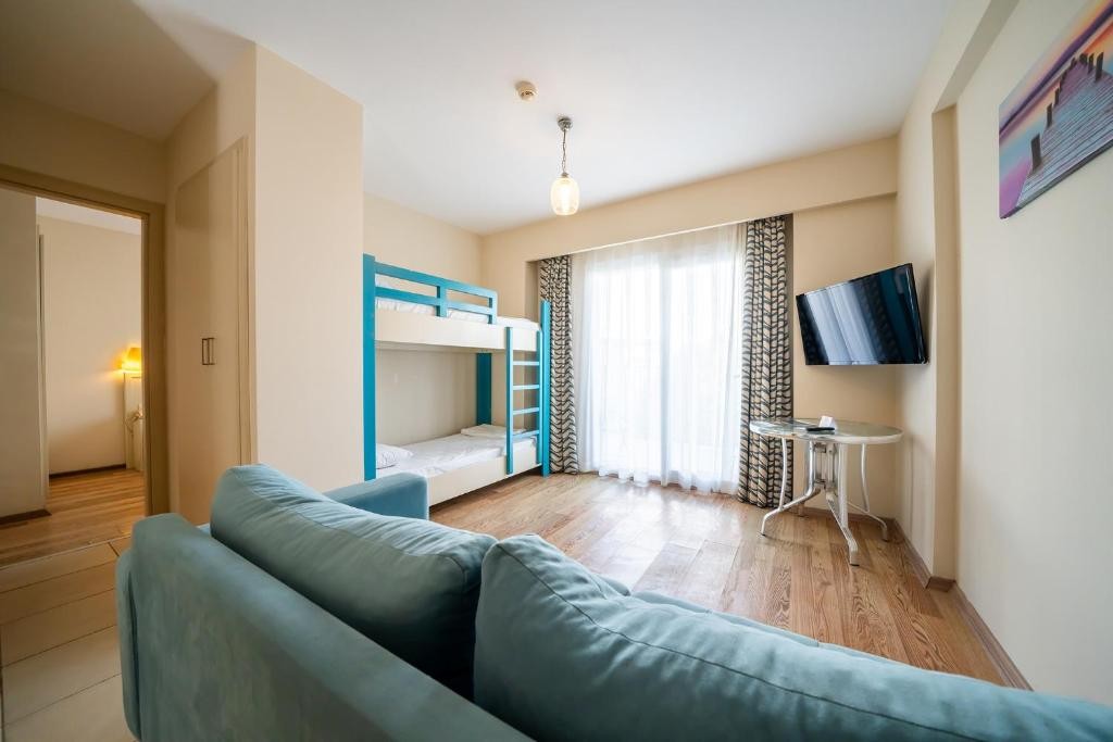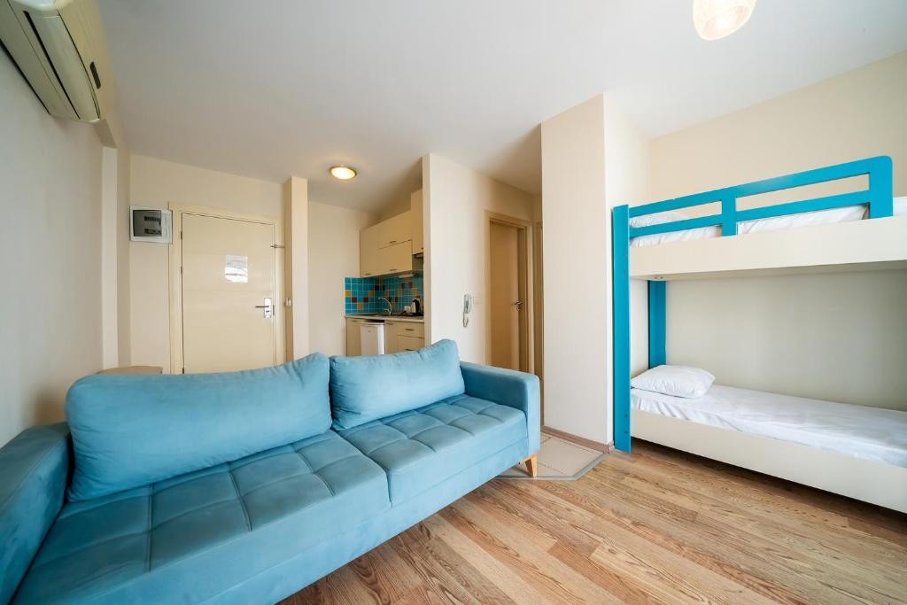 В стаите: В стаята има сейф, който се предлага срещу заплащане. Всяка стая има индивидуален климатик. Стаята се почиства ежедневно. Стаята разполага с телефон, паркет, сешоар, балкон, минибар, душ и телевизор.