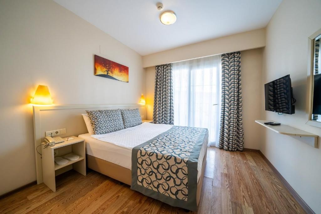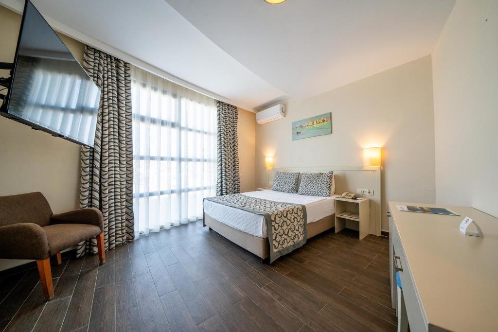 Разположение: На 35 км от летището и на 1 км от центъра на Бодрум, в село Гюмбет, на 100 м от плажа. Територията на хотела е разделена от път с подземен проход.
