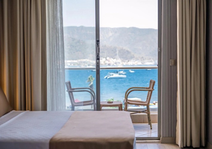 Хотелът разполага с 192 стаи, от които 45 стандартни с изглед градина, 4 стандартни без балкон, 68 стандартни с изглед море, 5 стандартни с изглед море без балкон, 26 фамилни с изглед градина с балкон, 2 фамилни с изглед градина без балкон, 236 фамилни с изглед море с балкон, 7 фамилни с изглед море без балкон, 10 делукс с изглед море, 2 стаи за инвалиди. Всички стаи са оборудвани с климатик, телевизор, телефон, баня с душ/ вана, сешоар, мини бар/платен/, сет за чай/кафе, сейф (безплатен). Почистване на стаите – всеки ден, смяна на спалното бельо и хавлиите – 2 пъти в седмицата.