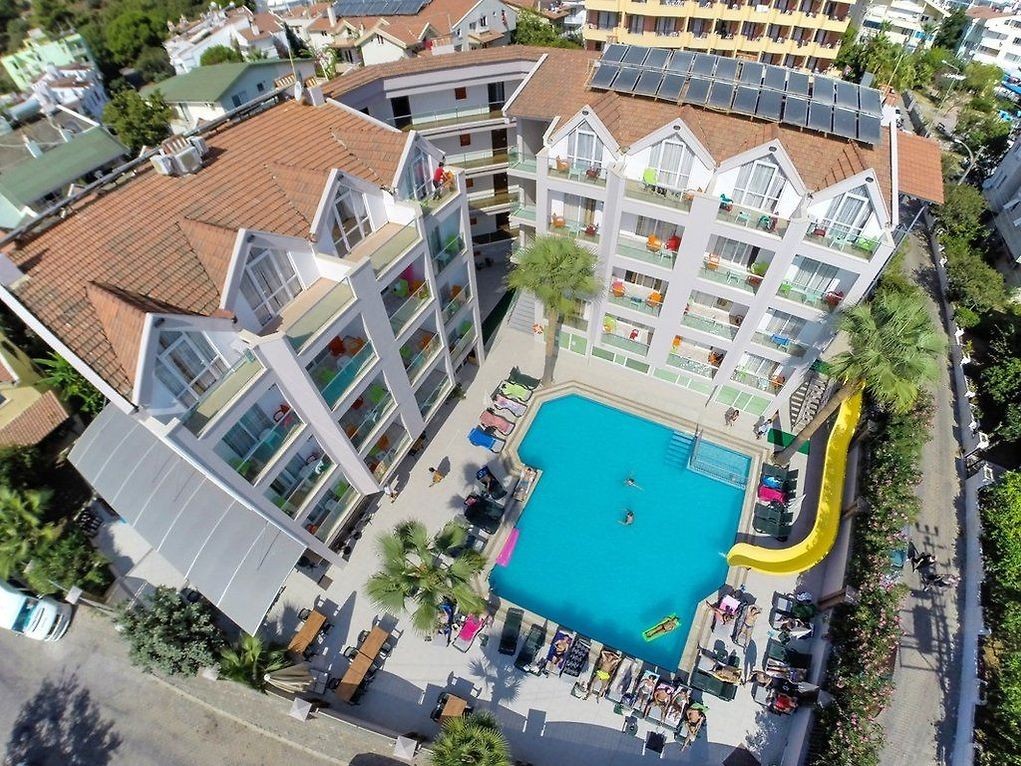 Нашият хотел с 4 звезди е на 150 метра от плажа. Центърът на града е на 2 км, а Ичмелер - на 5 км. Разстоянието до летището е 95 км.