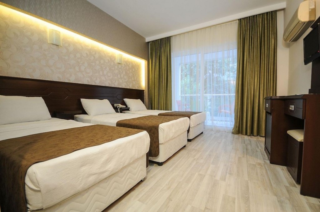 Нашият хотел с 4 звезди е на 150 метра от плажа. Центърът на града е на 2 км, а Ичмелер - на 5 км. Разстоянието до летището е 95 км. Нашият хотел разполага с 2 открити басейна, 2 детски басейна, турска баня, сауна, фитнес център, развлечения, спортни дейности, билярд, тенис на маса, турска вечер в определени дни, градина, телевизионна зала, стая за игри, интернет връзка.