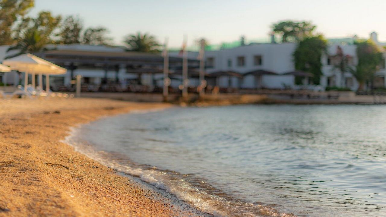 Собствен пясъчен плаж с дължина от 150 м и 150 м платформа - чадъри, шезлонги и кърпи на плажа и при басейна - безплатно.