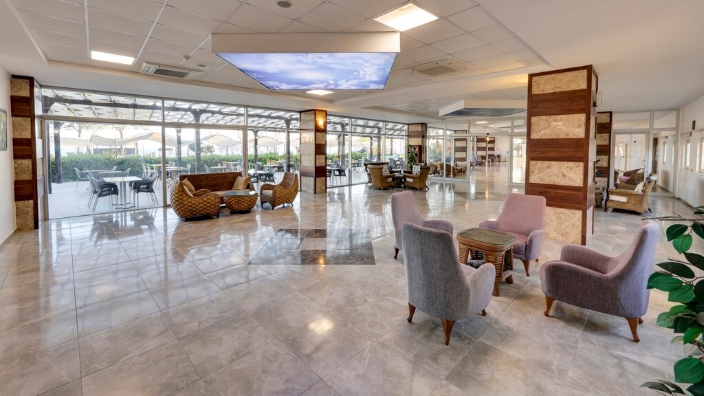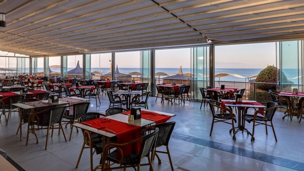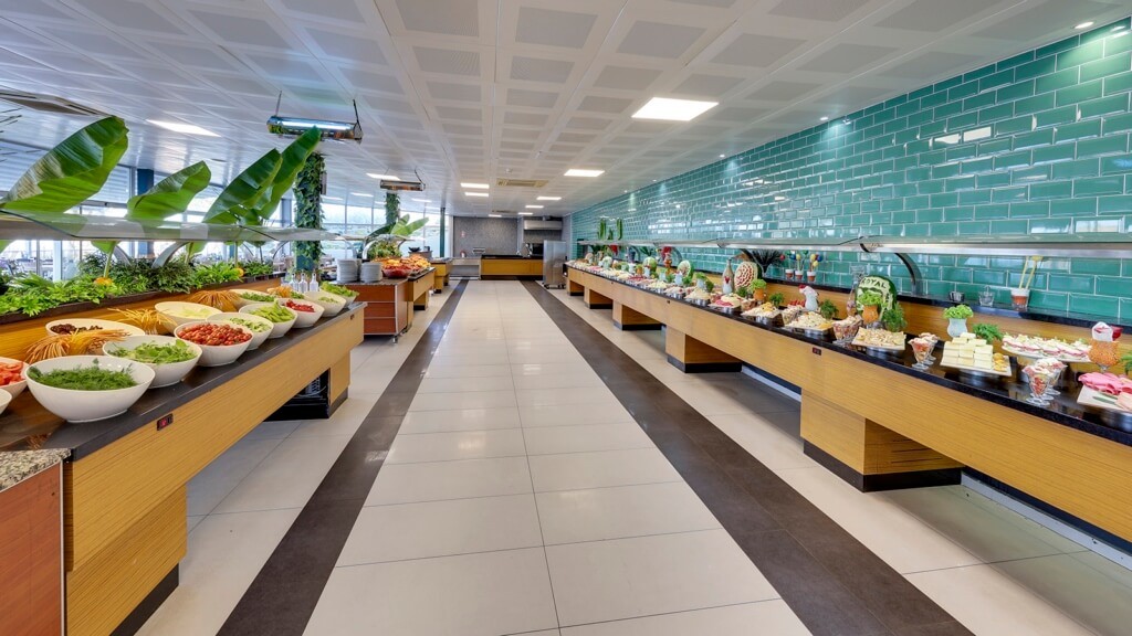 Основен ресторант, 2 снек ресторанта, 3 бара, дискотека, 3 открити басейна, водни пързалки, дискотека, игрална зала, СПА център, паркинг.