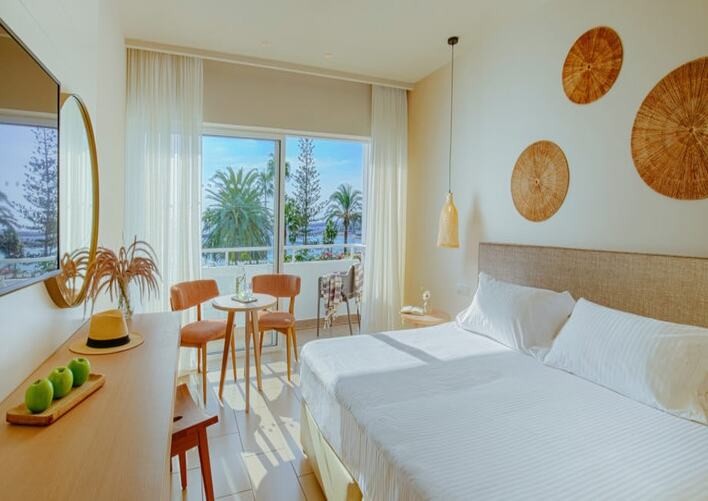 Nissi Beach Resort е разположен край частен плаж на Средиземно море, този 4-звезден хотелски комплекс има 3 басейна и тропически градини с площ 100 000 м². Предлага СПА център със сауна, хидромасажна вана и масажни процедури.