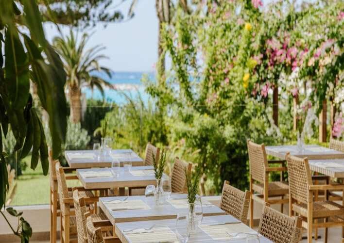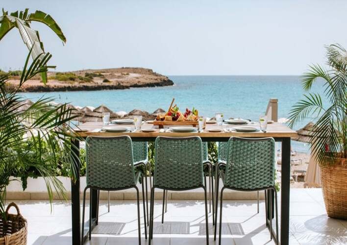 Хотелски комплекс Nissi разполага с 3 ресторанта с различна тематика и кухня и 5 плажни павилиона за леки закуски и напитки през целия ден. На разположение са няколко дървени беседки и открити тераси, от които гостите могат да се наслаждават на морския бриз. Сутрин се приготвя сертифицирана кипърска закуска.