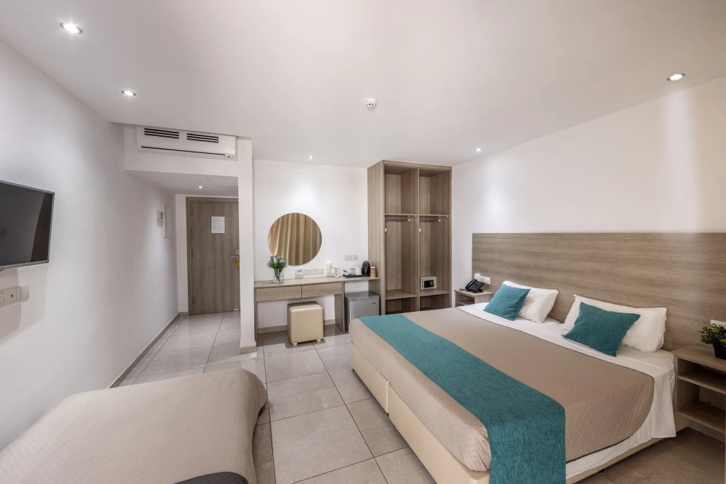 Хотел Milea се намира в сърцето на Агия Напа, само на 150 метра от перфектния пясъчен плаж Лиманаки. В непосредствена близост има избрани магазини, ресторанти и барове, а основните дейности в оживения център на града са само на 5-10 минути пеша. Хотел Milea предлага сезонен открит плувен басейн, бар и климатизирани помещения за настаняване с вътрешен двор и безплатен WiFi. Всички помещения за настаняване включват кът за сядане с диван, сешоар, кабелна телевизия, сейф и душ. Повечето помещения за настаняване имат балкон с морски изглед. На разположение на гостите в апартхотела има тераса за слънчеви бани.