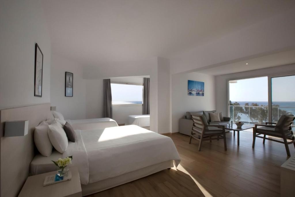Всяка стая предлага директен или страничен изглед към Средиземно море и разполага с телевизор с плосък екран и сателитни канали. Всяка самостоятелна баня е с вана или душ, сешоар и безплатни тоалетни принадлежности.