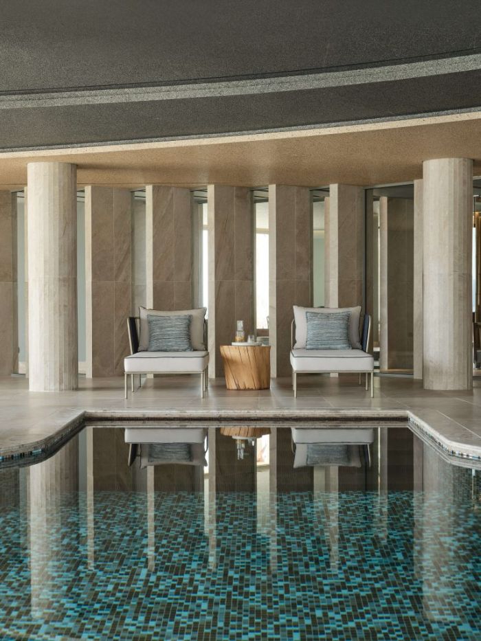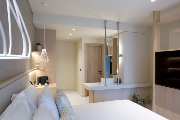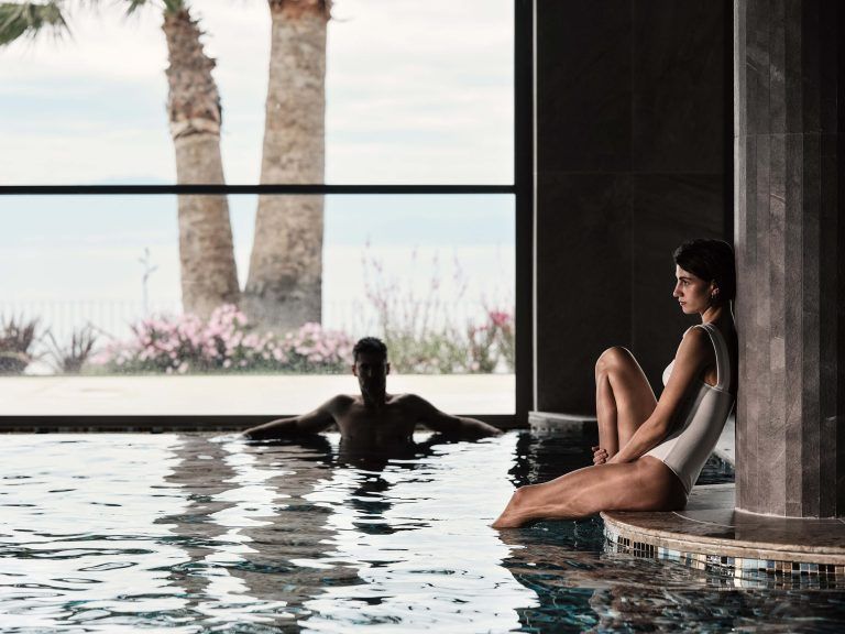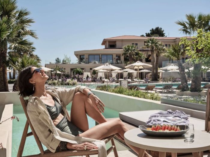 Разположен на хълм, хотелът предлага красива гледка към морето и разполага със собствен плаж, достъпен само за гости. Комплексът е създаден за релаксираща почивка, като предлага открит отопляем басейн, спа зона със сауна, парна баня и модерни съоръжения за възстановяване.