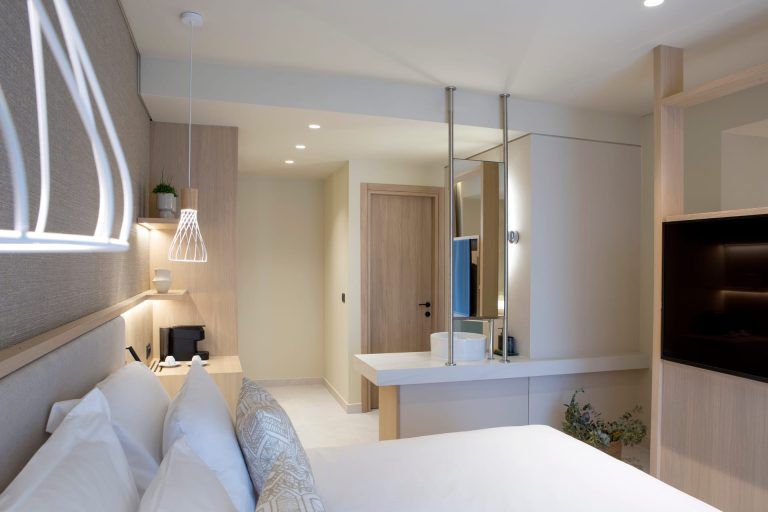 Хотелът разполага със 184 модерно обзаведени стаи, оборудвани с климатик, минибар, кафе и чай съоръжения, както и всички удобства за комфортен престой. От стаите се разкриват приятни гледки към морето или околната природа.