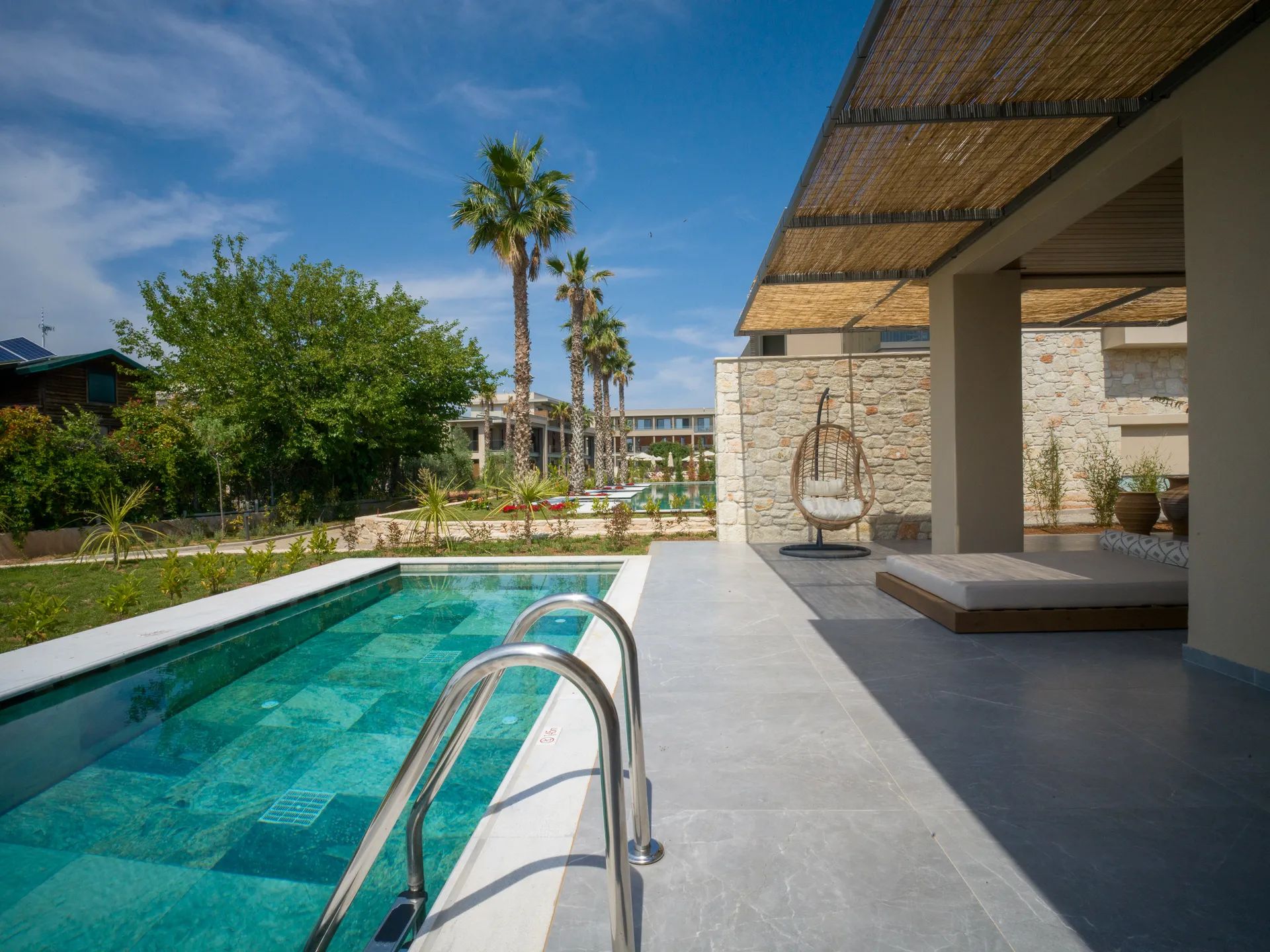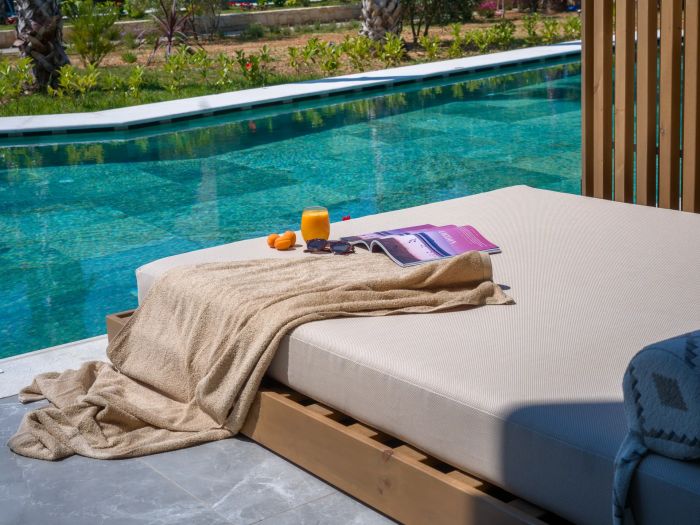 Хотелът се състои от 72 стаи, разпределени в няколко нискоетажни сгради, и разполага с рецепция, лоби бар, TV салон и зони за релакс. На разположение на гостите са голяма градина, слънчева тераса и открит басейн с pool бар, като шезлонги, чадъри и кърпи са включени както при басейна, така и на плажа.
