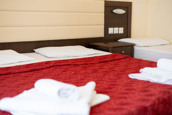 Хотелът разполага с 46 добре оборудвани стаи за двама, трима или четирима гости. Всяка стая има балкон, баня с душ, климатик, телевизор и мини хладилник, осигуряващи удобство по време на престоя.