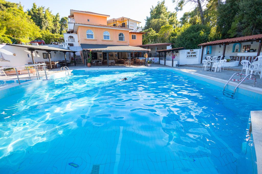 Гостите могат да се отпуснат край големия басейн или да се насладят на отделния детски басейн. Зоната за слънчеви бани с шезлонги и чадъри е идеална за релакс под гръцкото слънце.