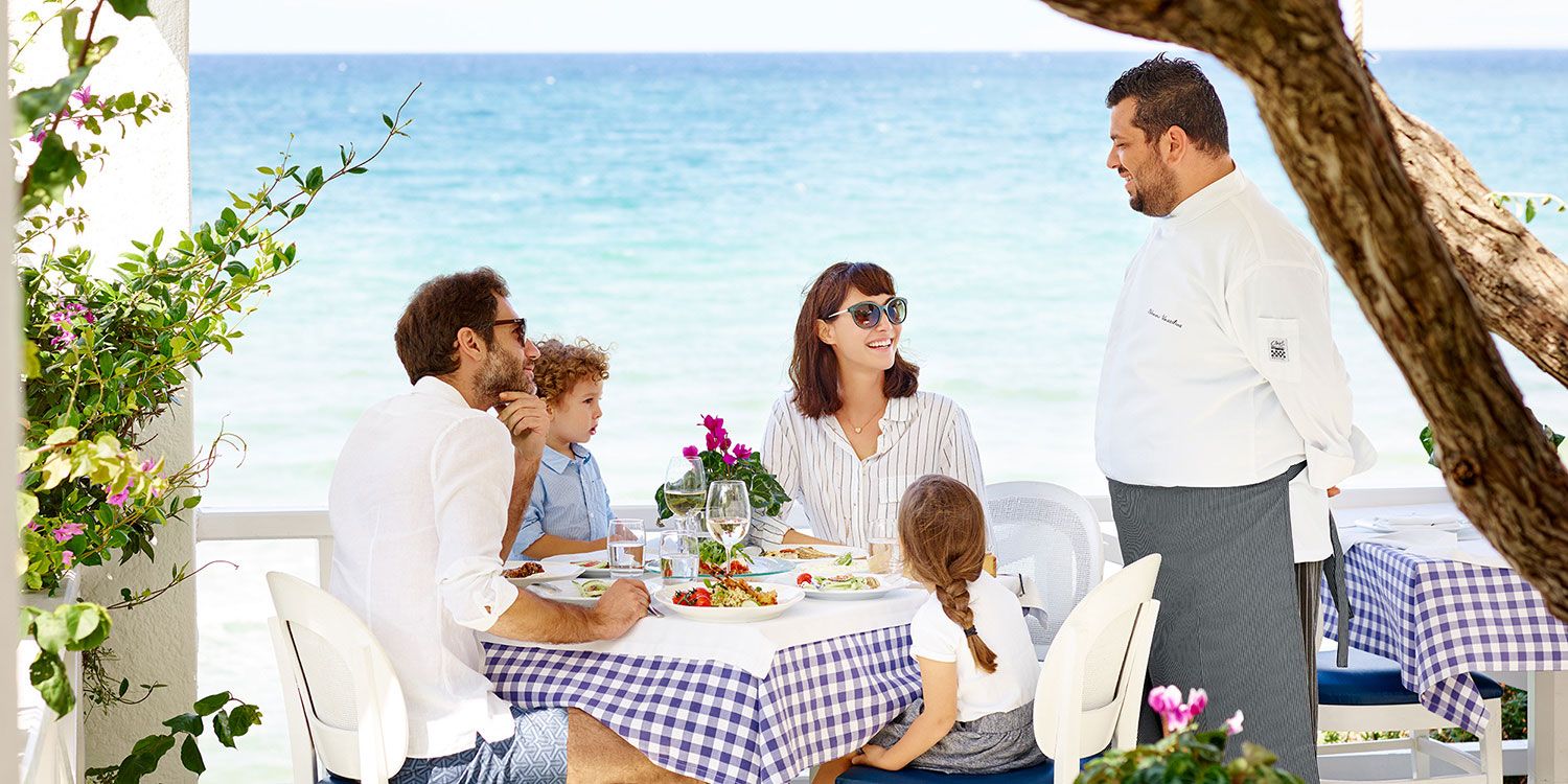 Гостите могат да се насладят на разнообразие от ресторанти – от а-ла-карт кухня с международни и средиземноморски ястия в „La Petite Cabane“, до традиционни гръцки специалитети в „Ouzerie“ и тематични бюфети в „Olympos Restaurant“. Лоби барът предлага приятна атмосфера за релакс с напитка.