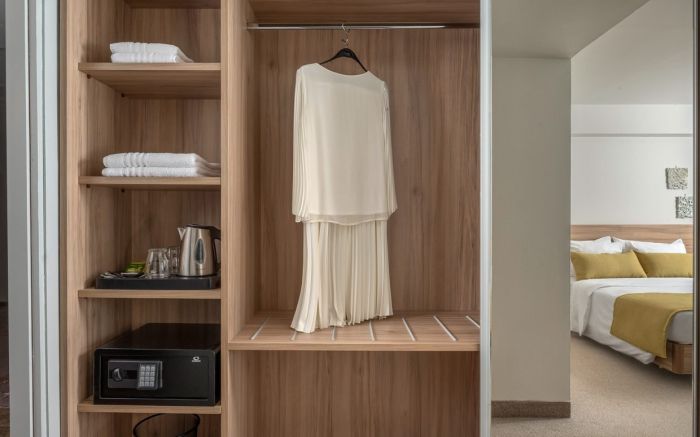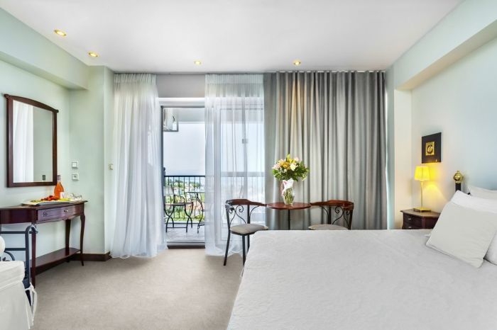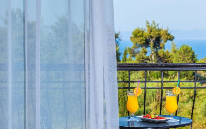 Хотелът предлага комфортни стаи – от супериор до фамилни, оборудвани с всички необходими удобства за пълноценен престой. Благодарение на разположението си на около 120 метра надморска височина, гостите могат да се насладят на красиви морски гледки през целия си престой.