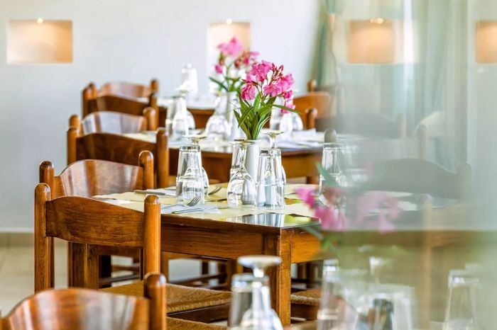 На разположение на гостите са открит басейн, ресторант-таверна с гръцка и средиземноморска кухня, както и плажен бар и pool бар, където може да се насладите на освежаващи напитки и коктейли.