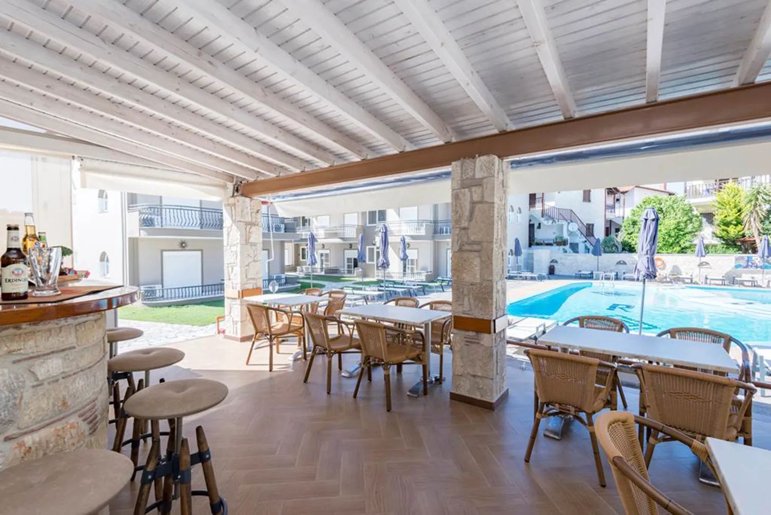 Гостите могат да се насладят както на открития басейн, така и на един от най-хубавите плажове в района – пясъчния плаж на Полихроно, отличен със „Син флаг“. За допълнително удоволствие се предлагат освежаващи напитки в снек бара и вкусни средиземноморски ястия в ресторанта.