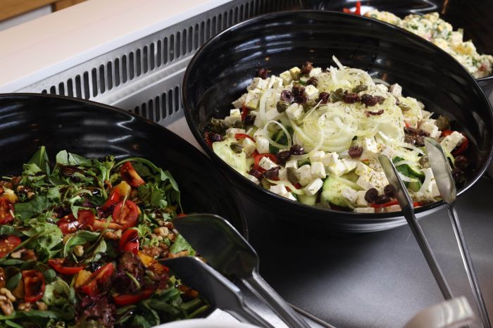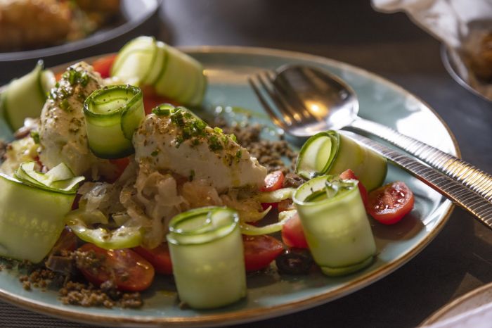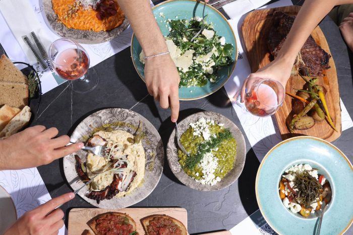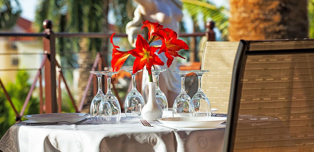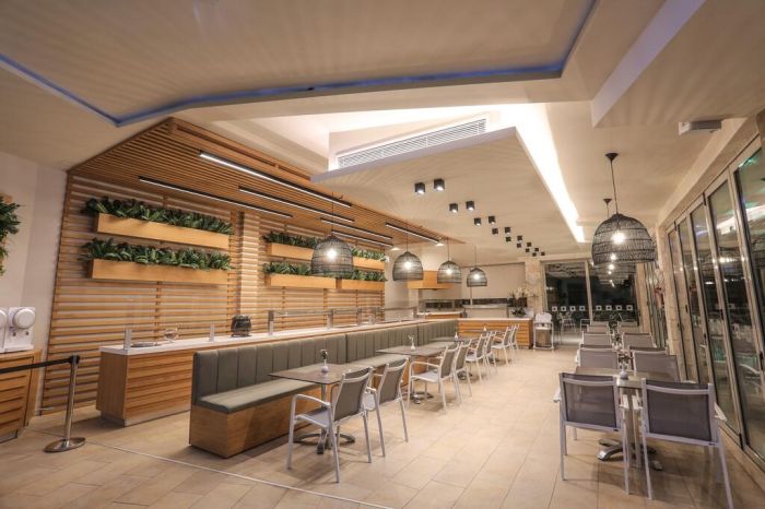 Гостите могат да се насладят на богата закуска, както и на разнообразие от средиземноморски ястия и напитки през деня. В градината има и барбекю зона за допълнително удобство.