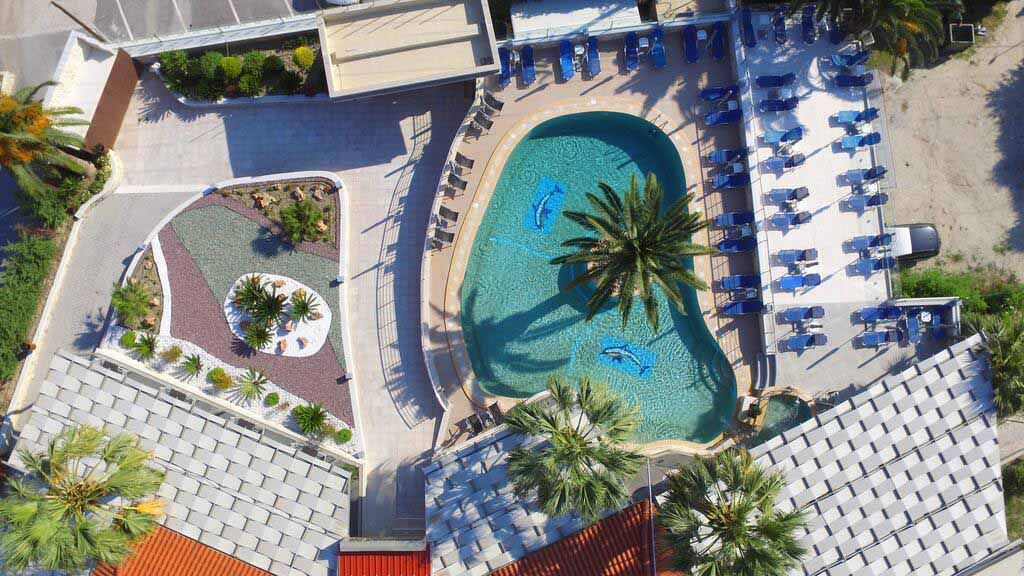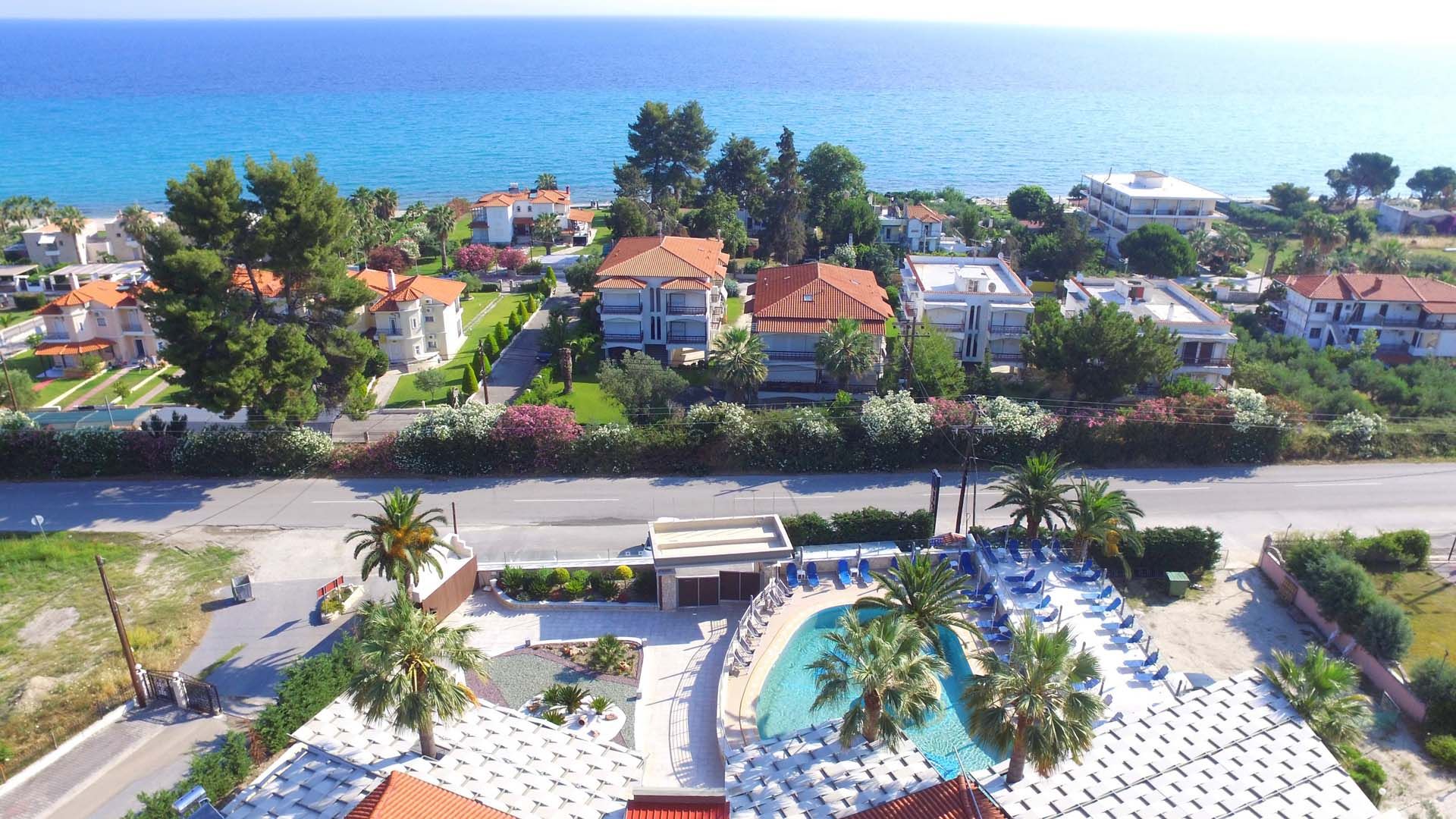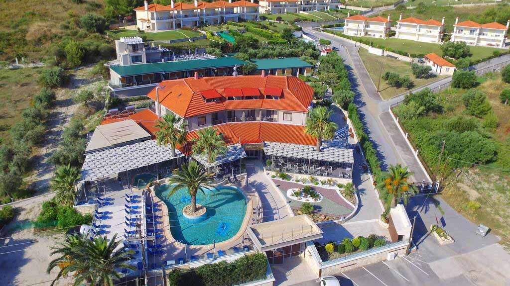 Разположен на около 350 метра от плажа и в близост до оживения център на Пефкохори, хотелът съчетава удобна локация с възможности за забавление и релакс.