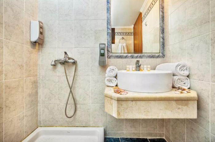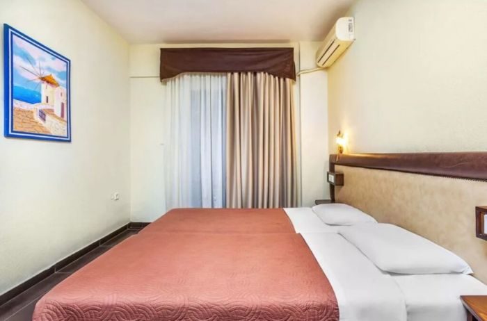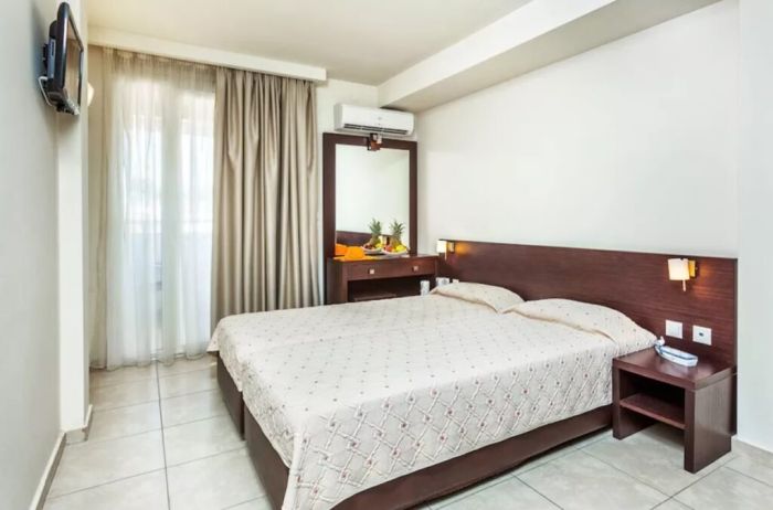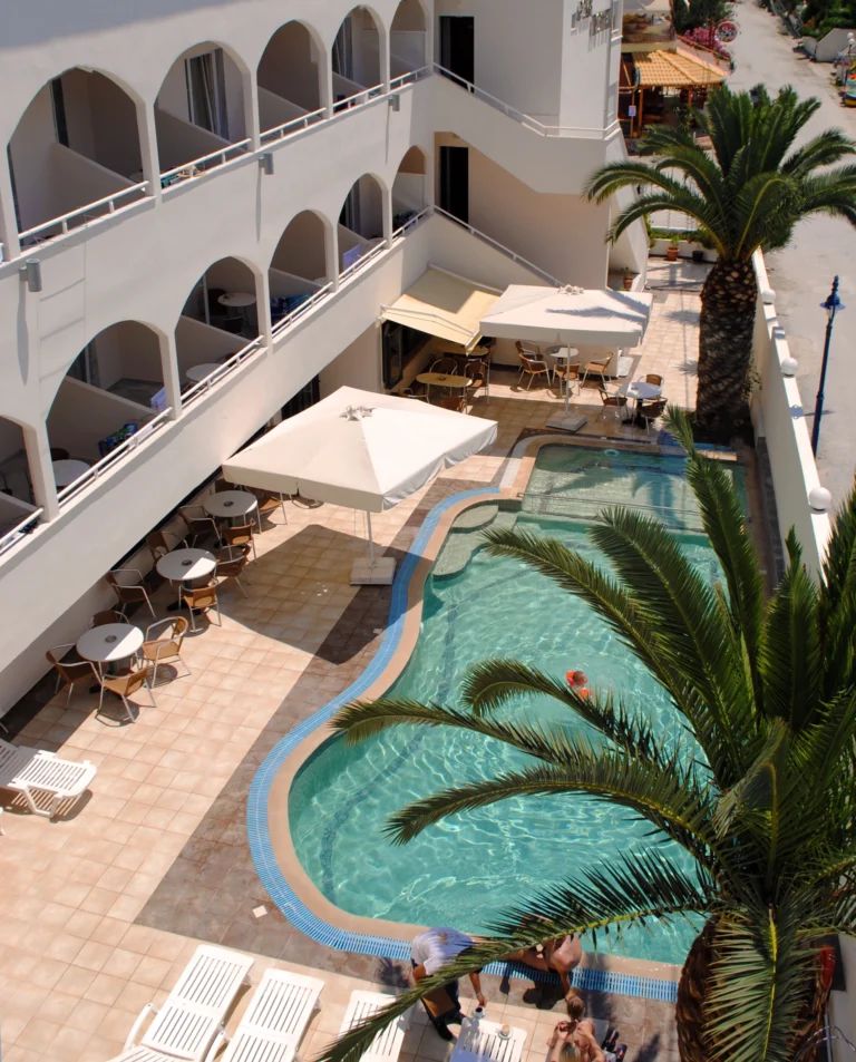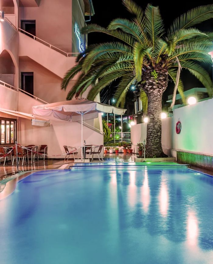Хотелът предлага спокойна атмосфера и удобна локация в близост до множество ресторанти, традиционни таверни, магазини и възможности за развлечения, включително водни спортове и разходки.