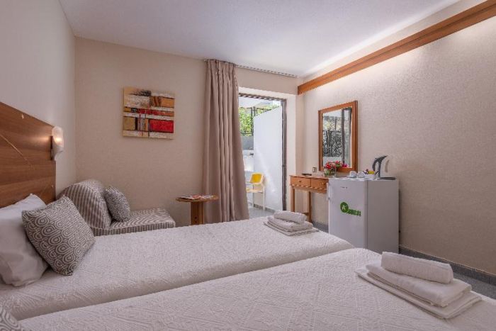 Хотелът включва Deluxe студиа и Superior стаи, разположени в реновиран комплекс с открит басейн и pool бар. Гостите могат да се насладят на богата европейска закуска на бюфет, гарантираща добър старт на деня.