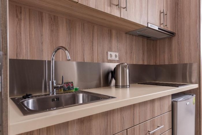 Studio Deluxe (Делукс студио) – 25–30 кв.м, стилно обзаведено помещение с обзаведен балкон, напълно оборудван кухненски кът (котлони, хладилник, кана), електронен сейф, електронно заключване и индивидуално регулируем климатик. Стаята разполага с 32’’ телевизор, безплатен WiFi и модерна баня със сешоар и козметично огледало.