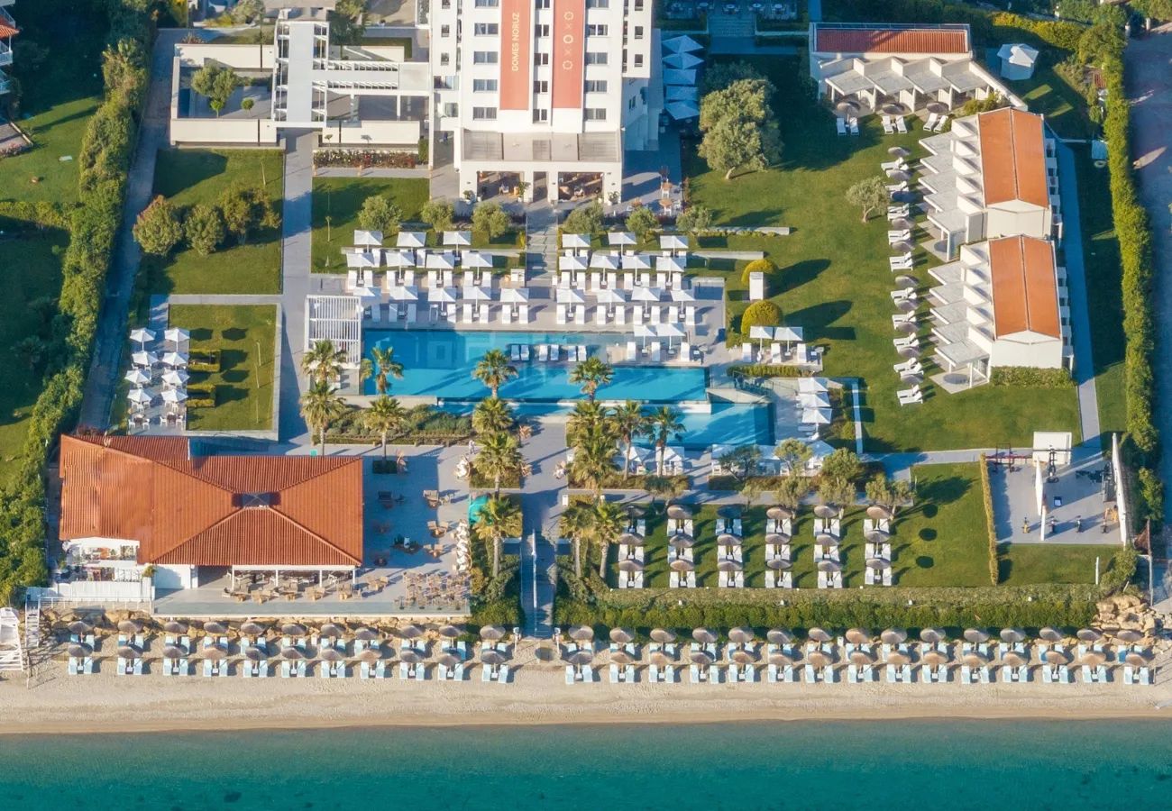 Domes Noruz Kassandra е отличен избор за почивка в Халкидики за двойки и млади гости, които търсят лукс, стил, активен нощен живот и уникално изживяване на първа линия.