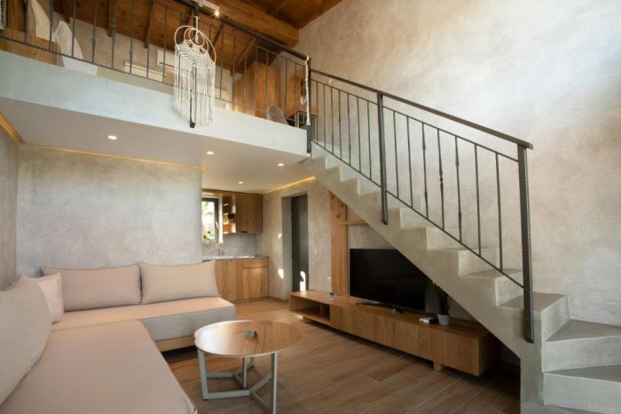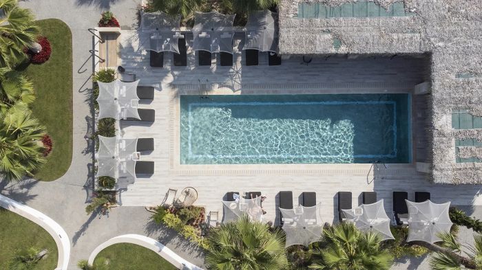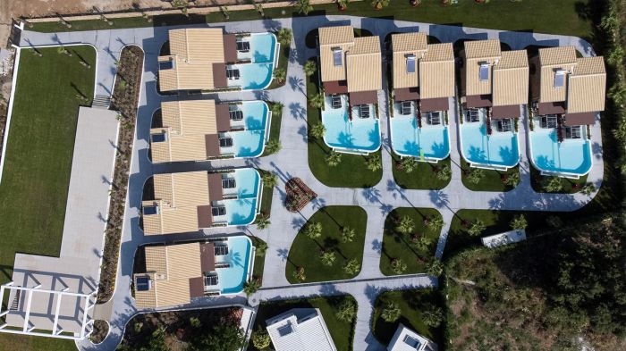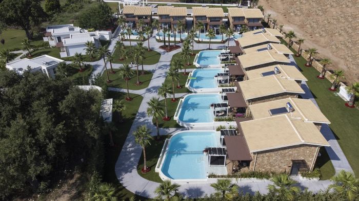 Комплексът разполага с 45 стаи и суити, проектирани да осигурят комфорт и уединение. Архитектурата е вдъхновена от гръцките острови, а използваните естествени материали, включително камък от Халкидики, придават уникален характер и връзка с местната традиция.