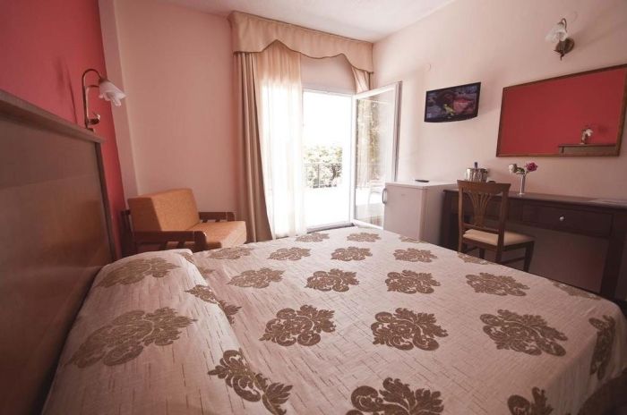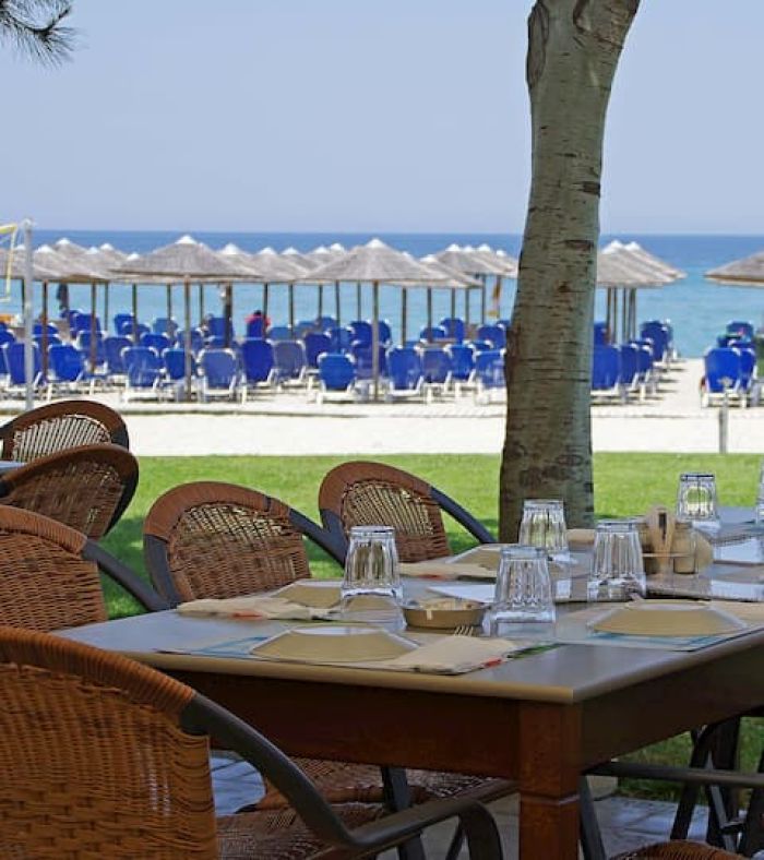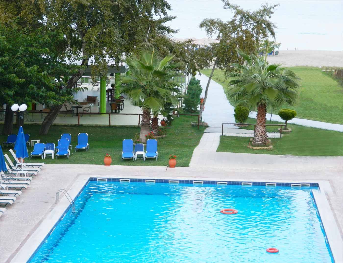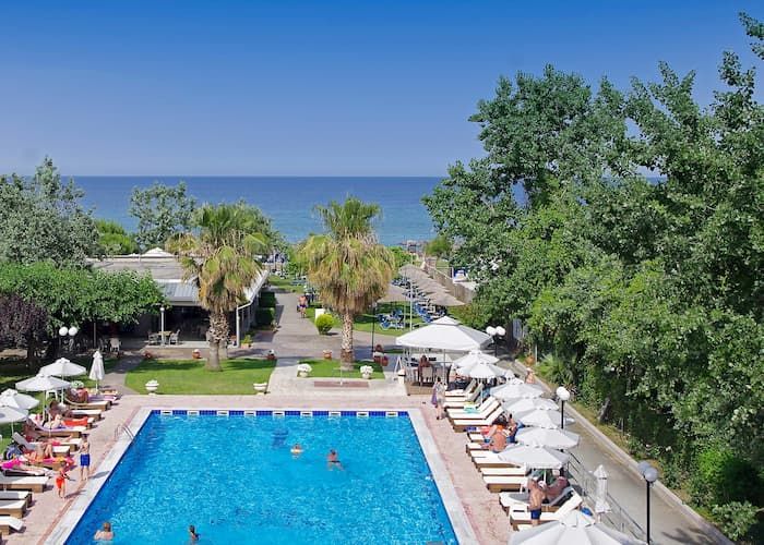 Хотелът е заобиколен от обширна градина от 10 000 кв.м и предлага директен достъп до пясъчен плаж. На разположение на гостите са открит басейн със слънчева тераса и красива гледка към крепостта Платамонас.
