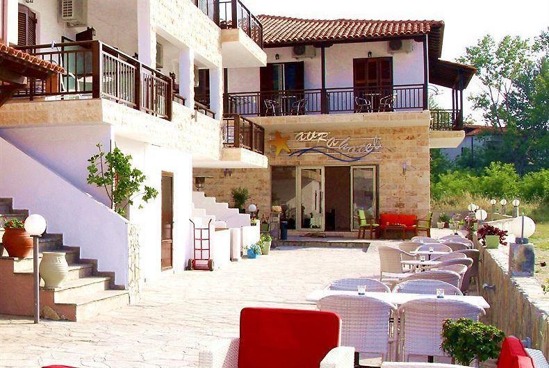 Hotel Avra в Ормос Панагиас, Ситония е уютен хотел на първа линия, разположен в близост до живописното пристанище и предлагащ спокойна атмосфера с директна гледка към морето.