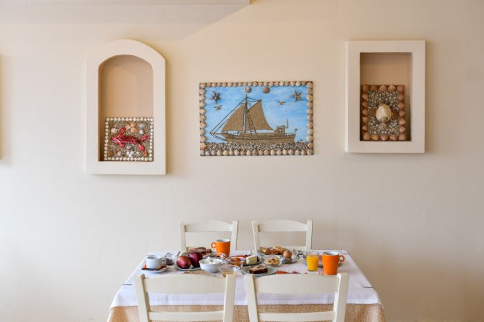 Денят започва с богата закуска на бюфет с традиционни гръцки вкусове – домашни сладкиши, пайове, пресни сокове и омлети.