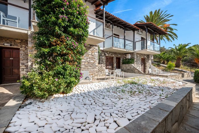 Хотелският комплекс „Aristoteles“ е изграден амфитеатрално, само на 150 м от морето, в прекрасен и спокоен район близо до Урануполи и в непосредствена близост до Света гора, на третия ръкав на Халкидики.