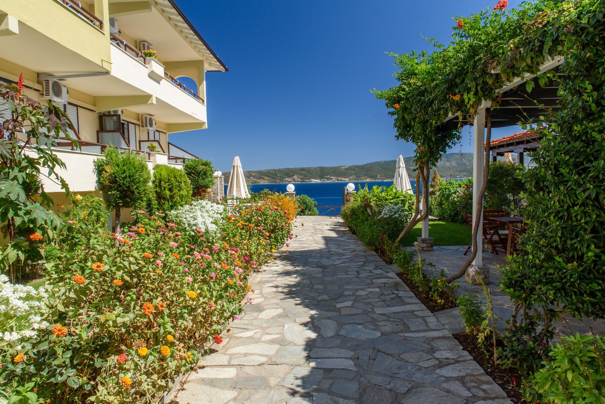 Комплексът се състои от две сгради и разполага с 46 стаи (двойни и тройни), оборудвани с всички удобства за комфортна почивка. Уникалната локация и атмосферата на остров Амулиани създават усещане за истинска лятна ваканция – спокойна, красива и незабравима.
