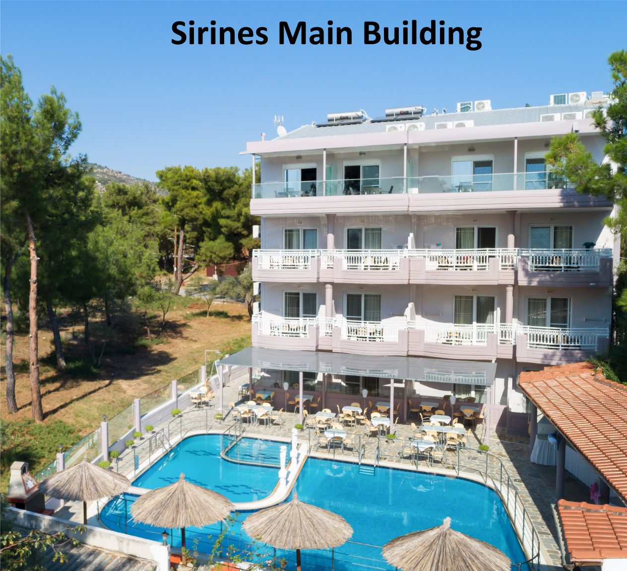 Hotel Sirines Complex на остров Тасос, в курорта Потос, е уютен комплекс, предлагащ комфортно настаняване и приятна атмосфера за пълноценна почивка в Гърция. Разположен само на около 80 метра от морето и на 250 метра от центъра на курорта, хотелът осигурява лесен достъп до плажа, както и до разнообразие от ресторанти, кафенета и барове.