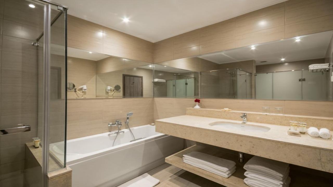 Супериорните стаи са с размер 46 м2 и предлагат максимално настаняване за двама възрастни, докато в делукс стаите с размер 58 м2 могат да бъдат настанявани до двама възрастни с две деца. Гостите могат да избират между стаи с гледка градина, гледка басейн, частична гледка море, както и Swip-up стаи с директен достъп до басейна от терасата на стаята. За клиентите, желаещи ексклузивно настаняване, се предлагат апартаменти Executive с размер 92 м2, Deluxe с размер 110 м2 и Royal с размер 141 м2. Луксозните вили на два етажа, с размер от 216 м2, са подходящ избор за големи семейства и компании, тъй като предлагат настаняване за до 4 възрастни с 3 деца.